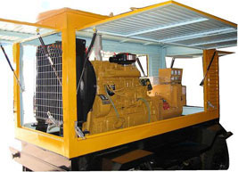 察哈尔右翼后柴油发电机组/移动柴油发电机组设计独具创新,机动性高、重心低、制动安全、制造精良、外形美观。 察哈尔右翼后拖车车架采用槽梁焊接成框架结构,节点选择合理、强度高、刚性好;同时装有钢板弹簧悬架结构;拖车采用高度可调节插销式牵引架,适用于各种高度牵引车;采用圆形钢管焊接直通式车轴,结构紧凑,安全可靠;车架四角设有机械式支撑装置,配备惯性行车制动、驻车制动和脱离应急制动,确保机组在各种状况下的安全;车架前端设有支撑轮,具备承受机组垂直载荷的功能的同时还具备导向功能;整车配备转向和刹车指示灯,同时装有尾灯标准插头